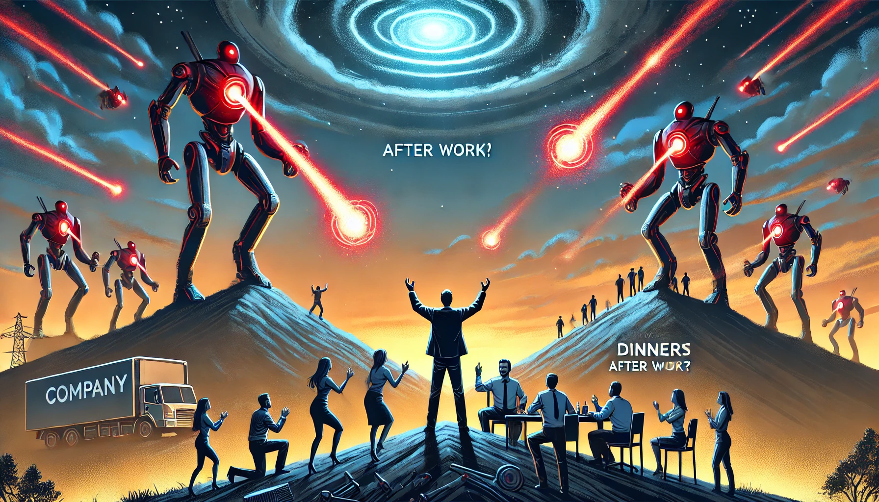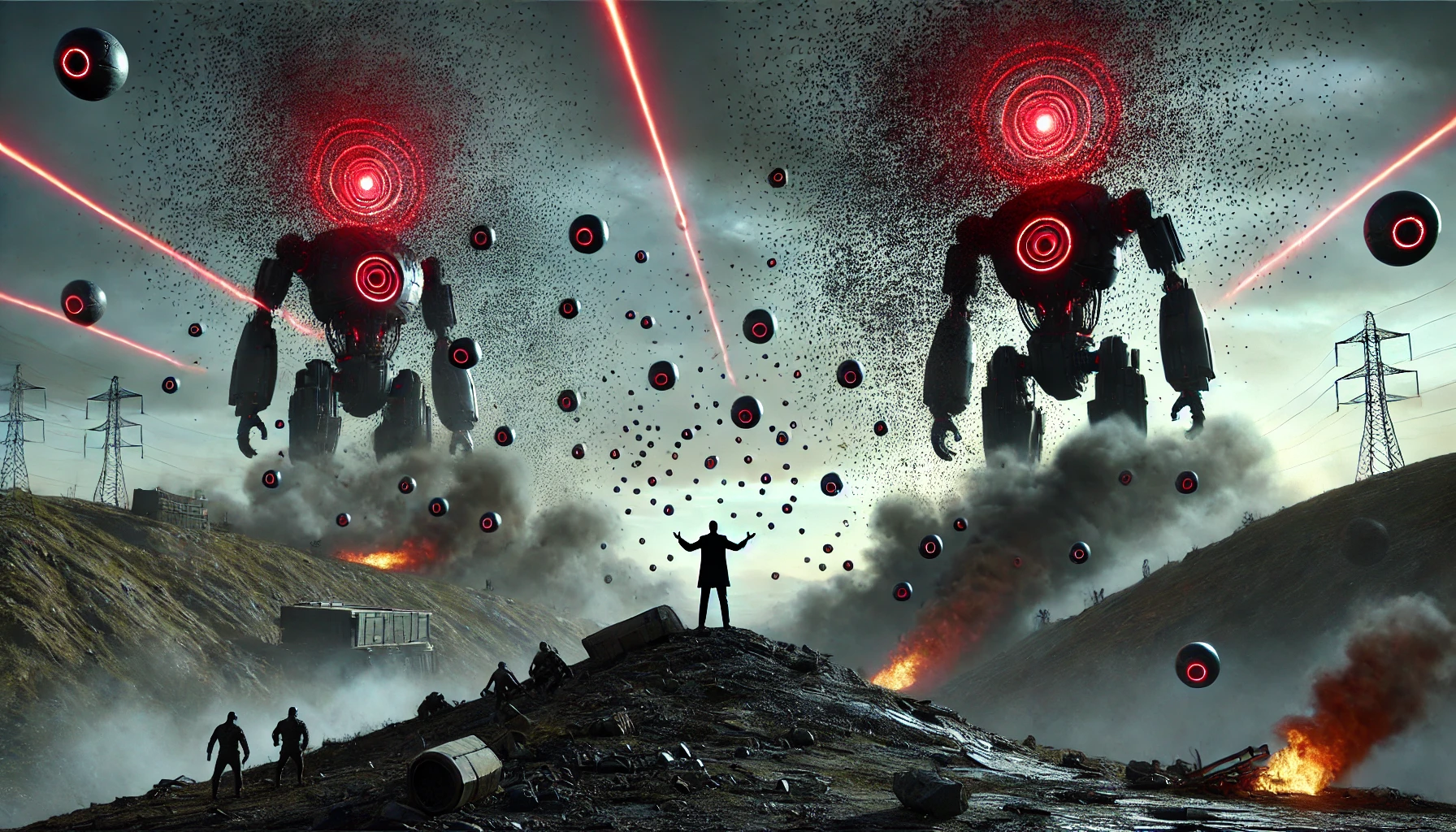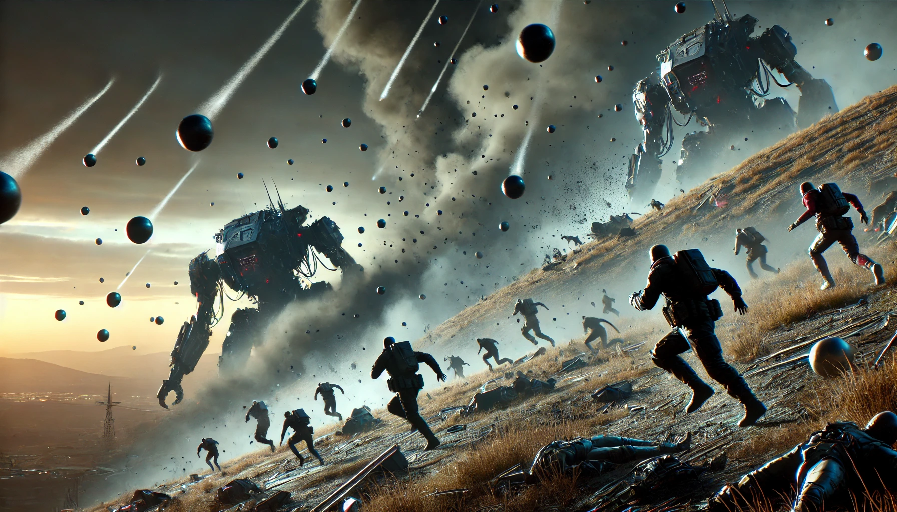우린 언덕을 오르고 있었고 중간쯤 갔을 때 대략 10여 미터 크기의 로봇들이 우릴 향에 오고 있었다.